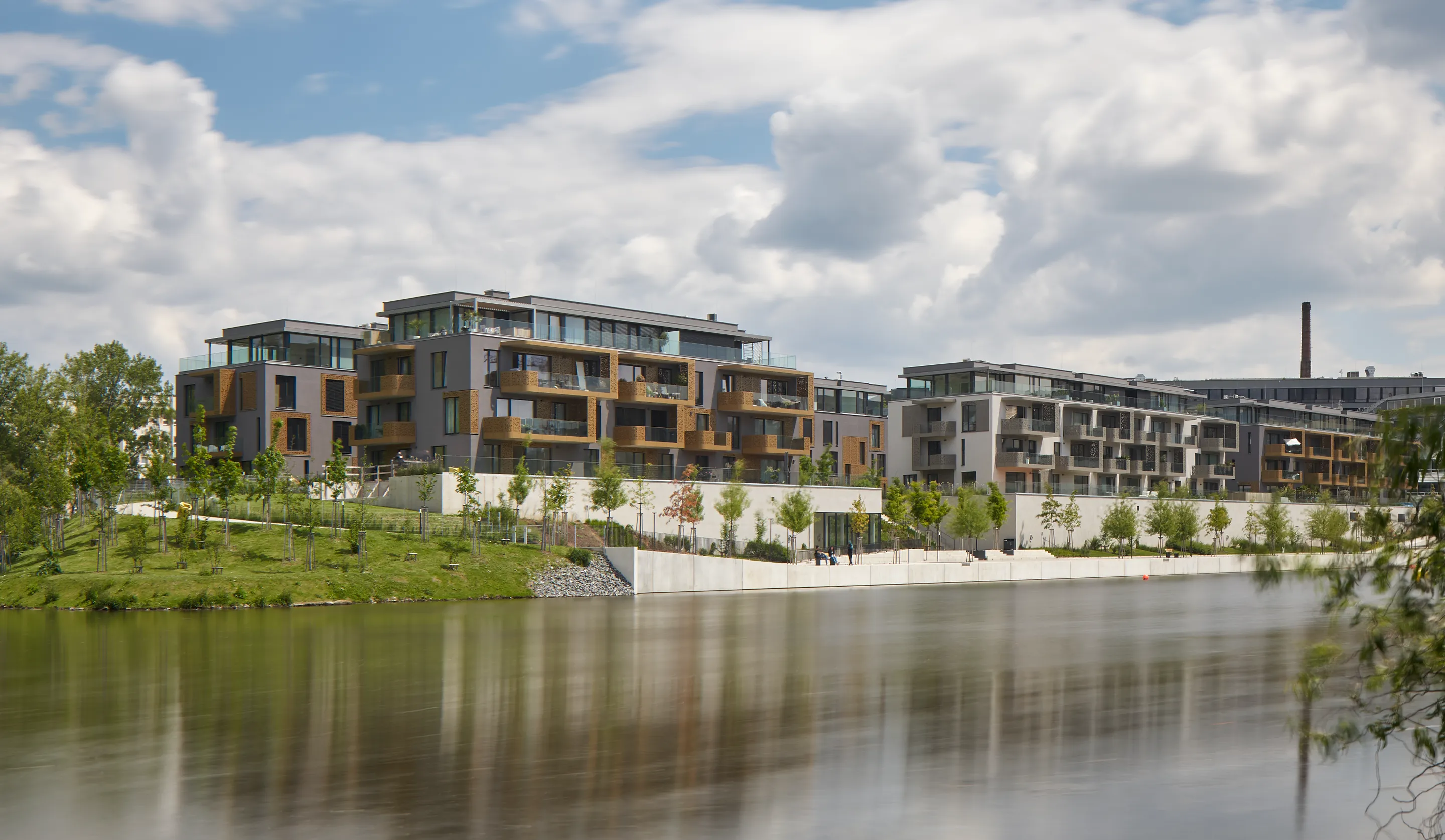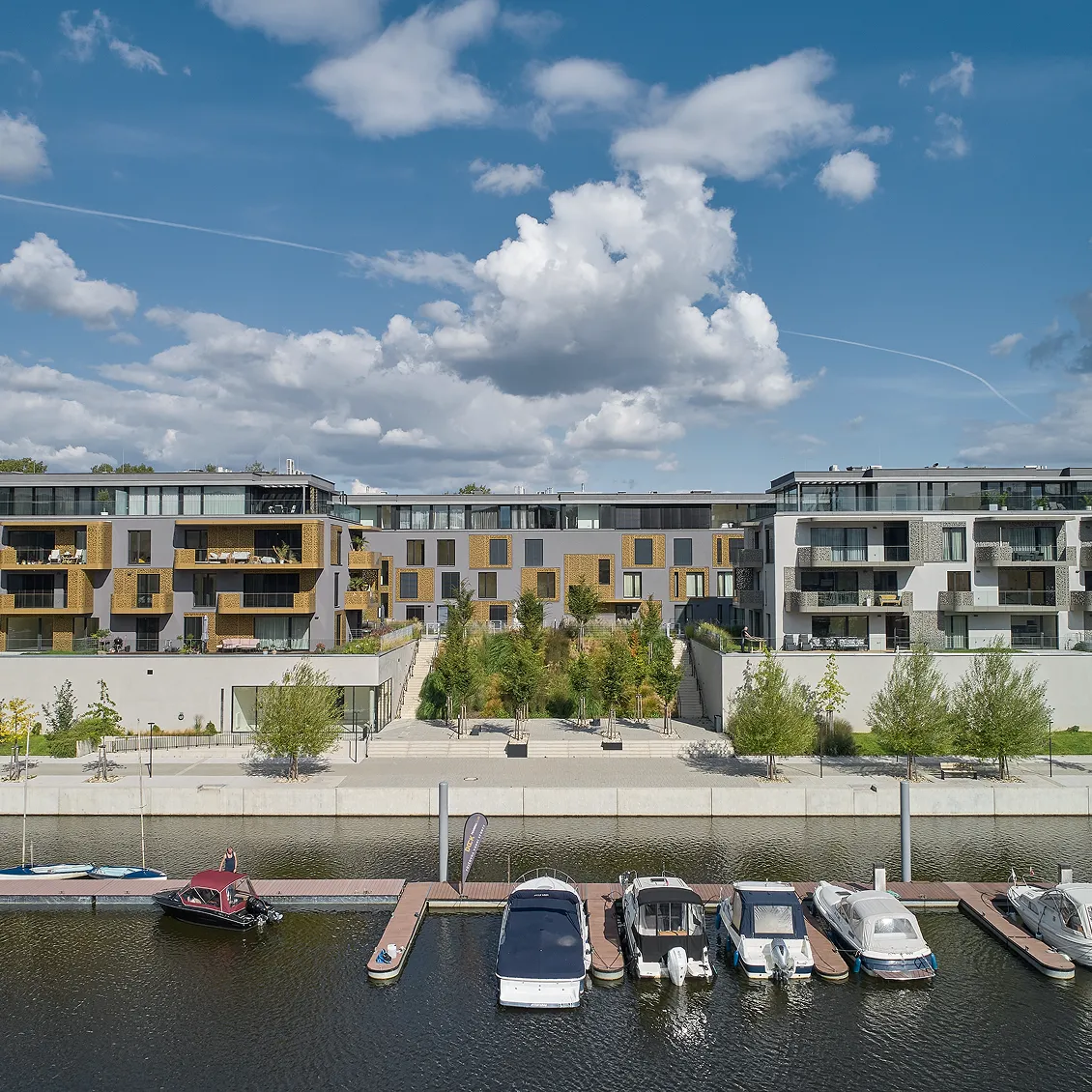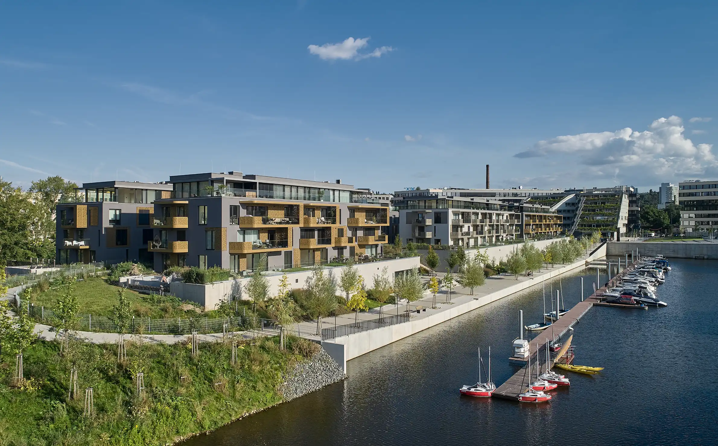 Bývalý přístavní brownfield v Libni jsme proměnili v příjemné a netypické místo pro život v holandském stylu. Pět bytových domů projektu Dock stojí na poloostrově, který obyvatelům přináší pocit, jako by žili přímo na hladině řeky, a zároveň nabízí klid a soukromí, přestože pulzující velkoměsto je nedaleko.