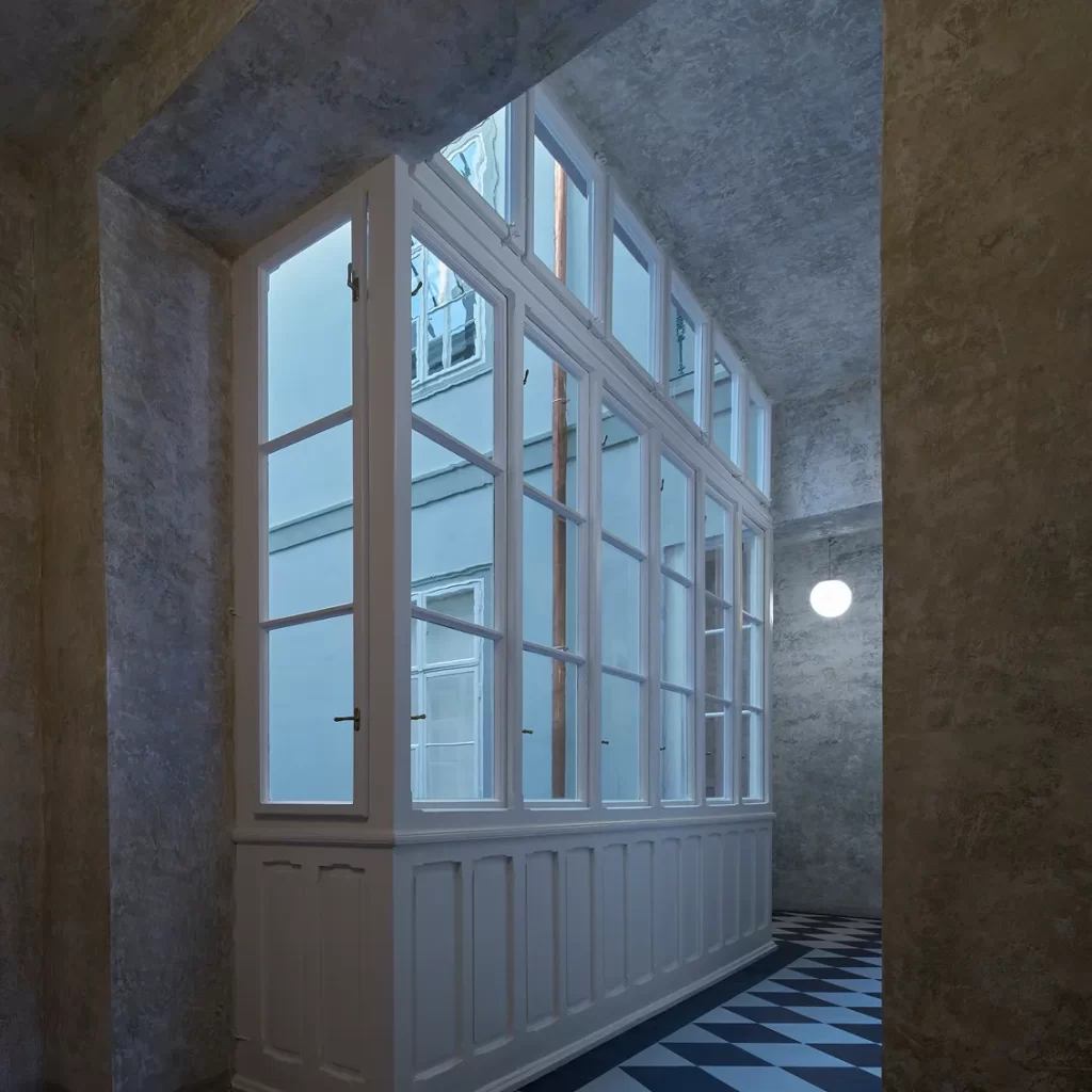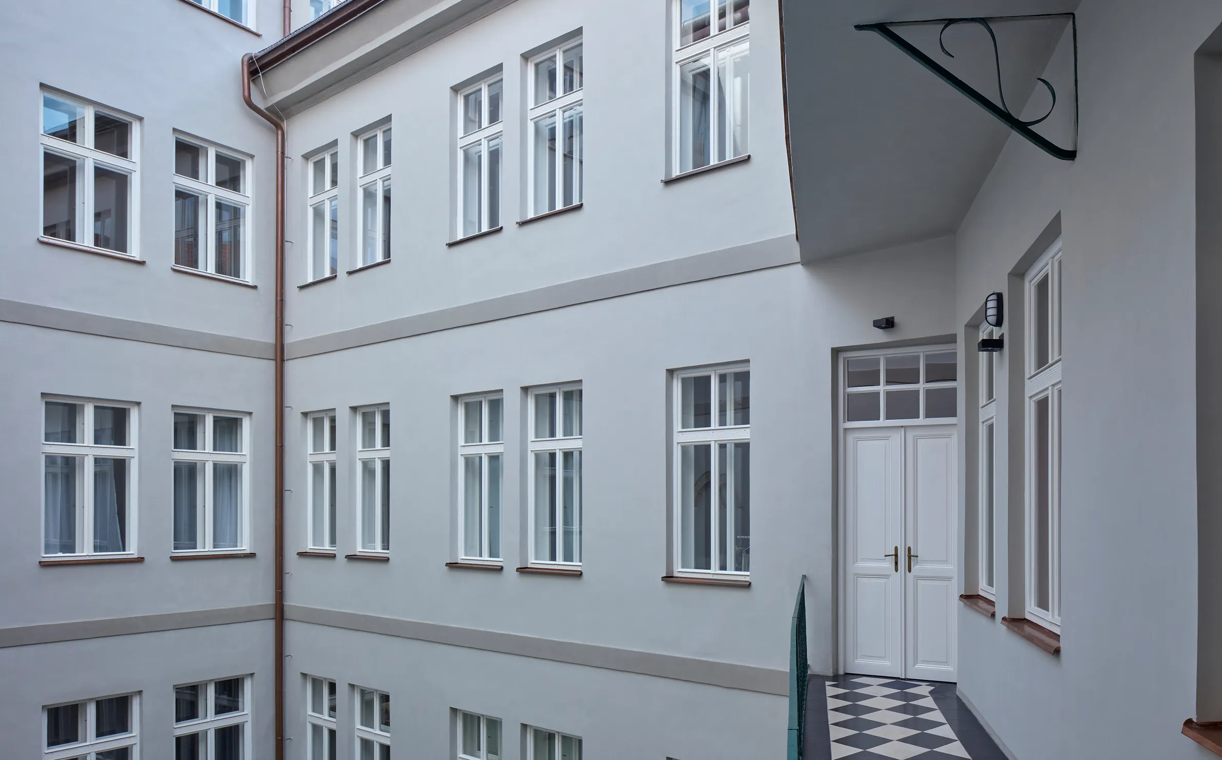 Nevšední rekonstrukce klasicistního činžovního domu v historickém centru Prahy trvala devět let. Příběh této pozoruhodné stavby sahá až do 14. století, proto jeho pokračování vyžadovalo maximálně citlivý přístup podložený komplexním studiem souvislostí.