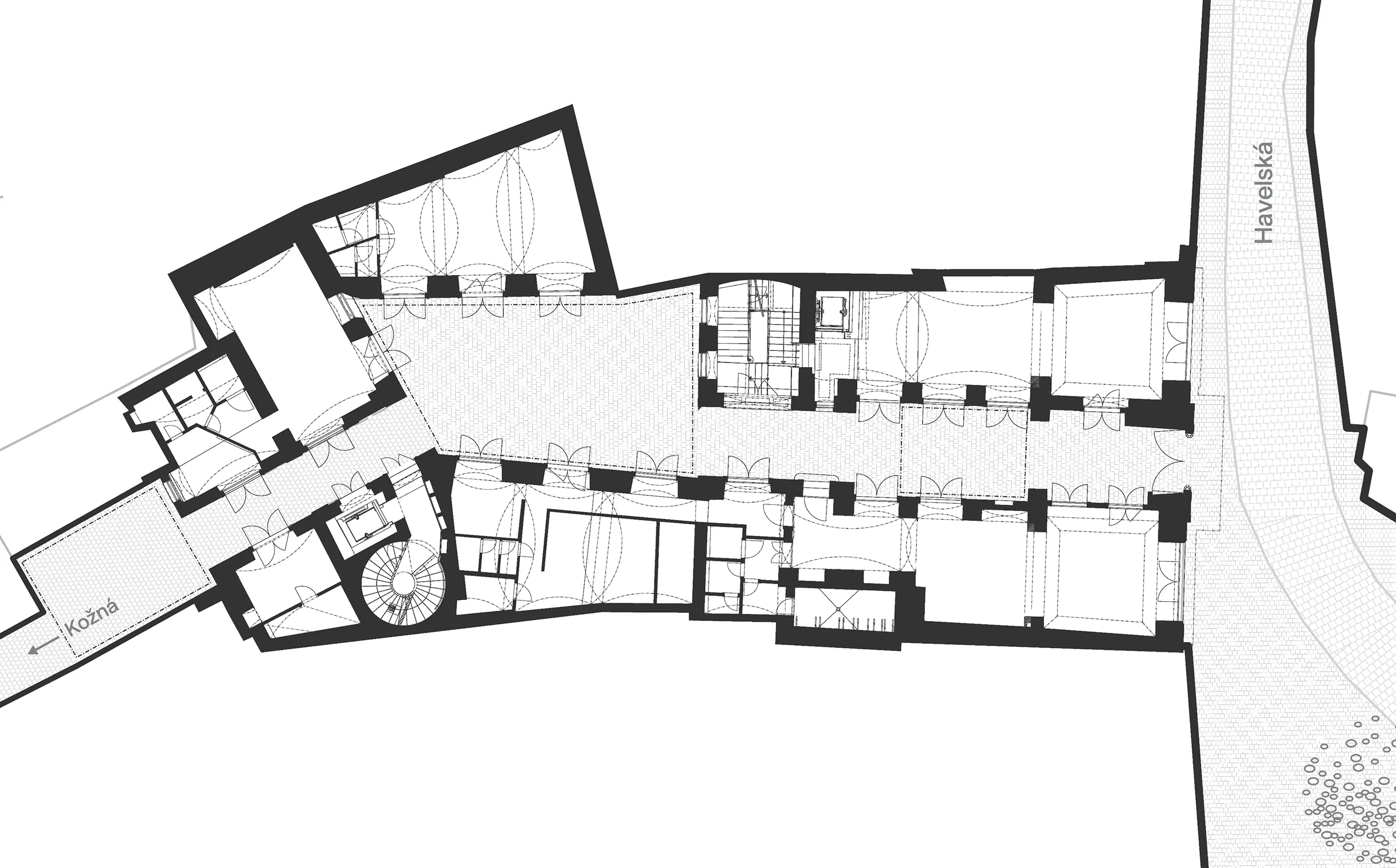 Obytná funkce je pro staré centrum Prahy velmi důležitá, protože jen díky ní tu mohou vznikat přirozené sociální vztahy. Jednotlivá podlaží budou tedy i po drobných úpravách znovu sloužit pro bydlení. Vzhledem ke standardům 21. století bylo třeba provést změny například v umístění toalet a koupelen. Podkrovní prostory byly navrženy jako obytné včetně nového přístupu. Další významnou, ne však agresivní stopou, jsou vestavěné výtahy. Technologie jsme však do stavby integrovali tak, aby nebyly příliš zřetelné. V přízemí domu se pak nachází prostory pro restauraci či hostinec. Zachovali jsme také původní průchozí funkci domu.