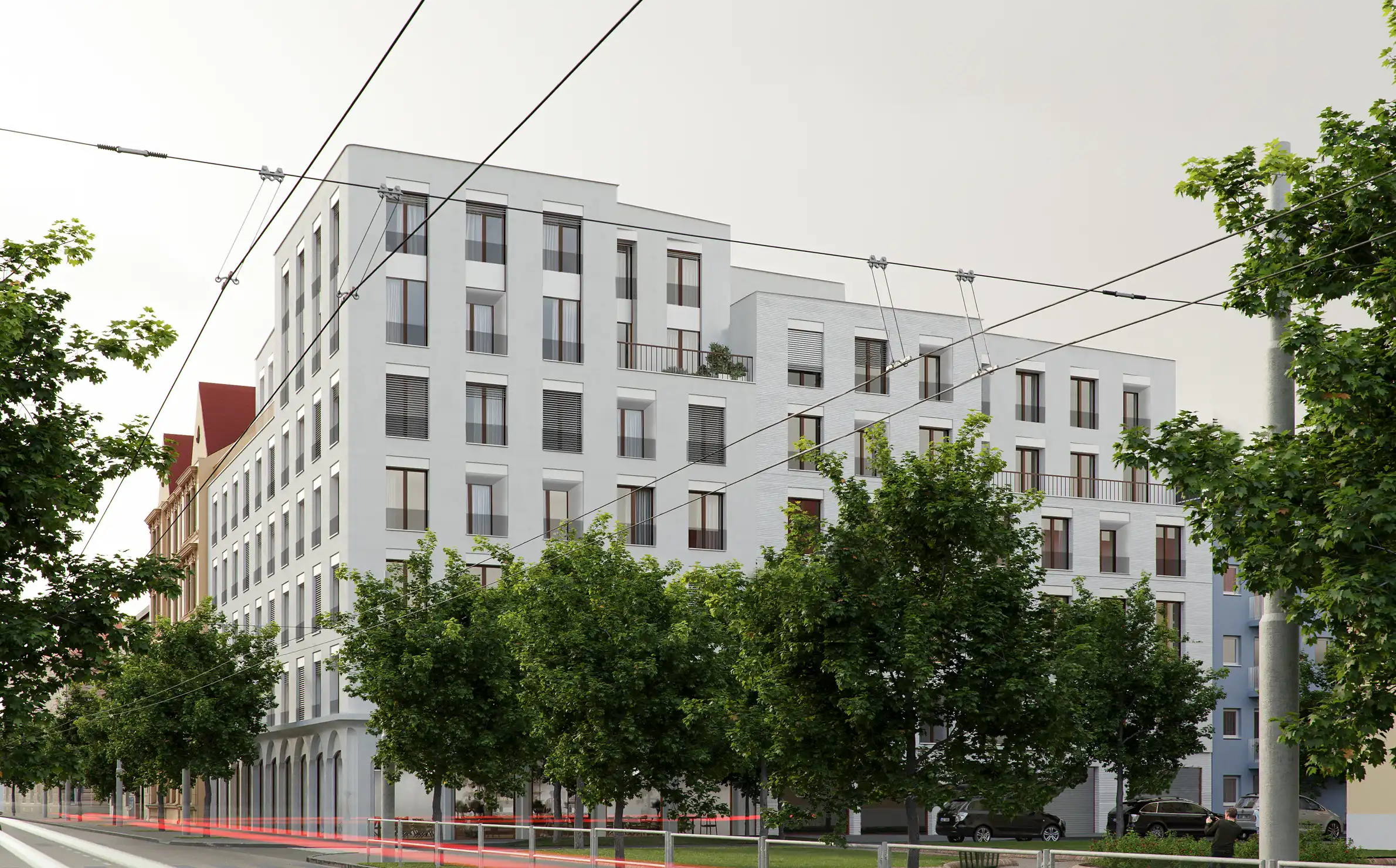 Plzeňský bytový dům Doudlevecká jsme navrhli tak, aby přirozeně navazoval na stávající okolní zástavbu z počátku minulého století, ale zároveň byl moderní a splňoval požadavky současné společnosti.