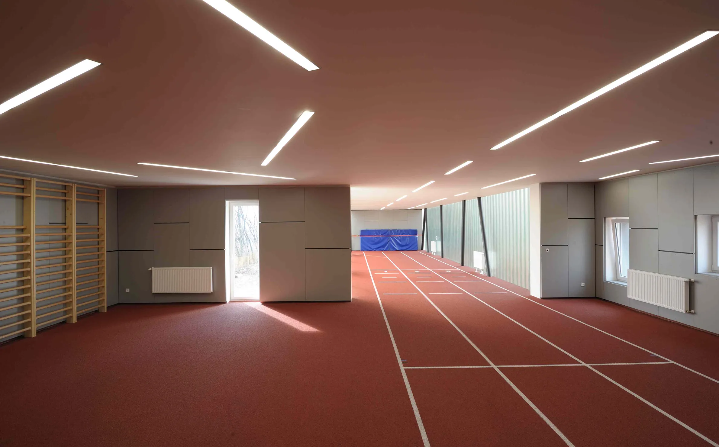 Moderní tělocvična nabízí krytou běžeckou dráhu délky 60 metrů, doskočiště pro skok daleký, výškově splňuje parametry pro skok o tyči a má i univerzální povrch, například pro míčové hry. Dalším vybavením je zázemí pro lukostřelbu, posilovna a místnost pro judo s povrchem tatami.